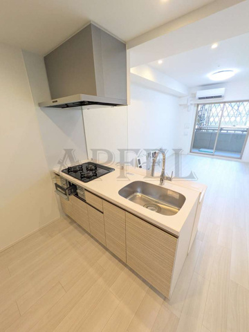 キッチンは開放感のある対面式システムキッチンを採用しており、リビング全体を見渡せる設計です。料理をしながら会話がしやすく、来客時や一人暮らしでも安心感があります。